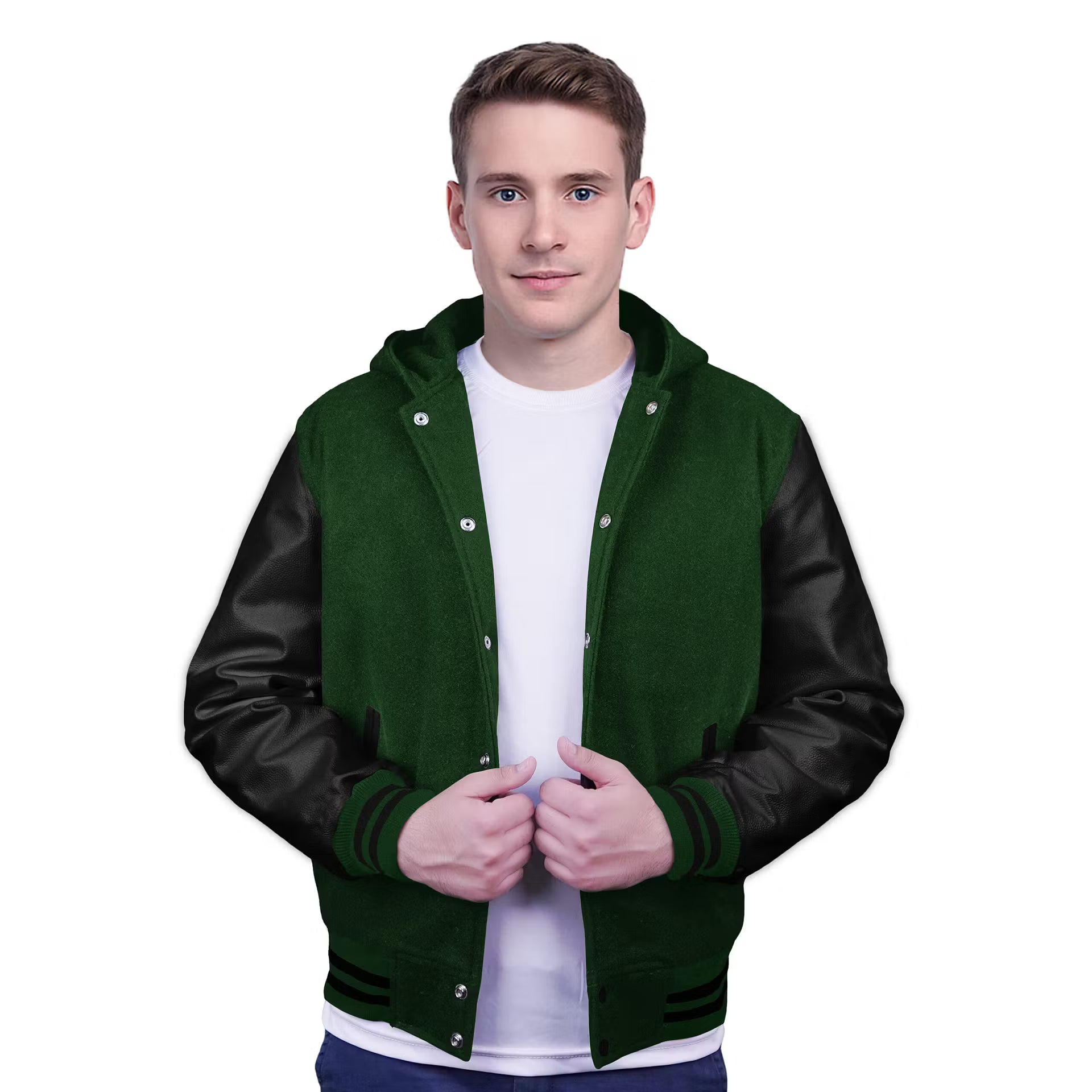 Black-Leather Sleeves & Wool Body (Hoodie)