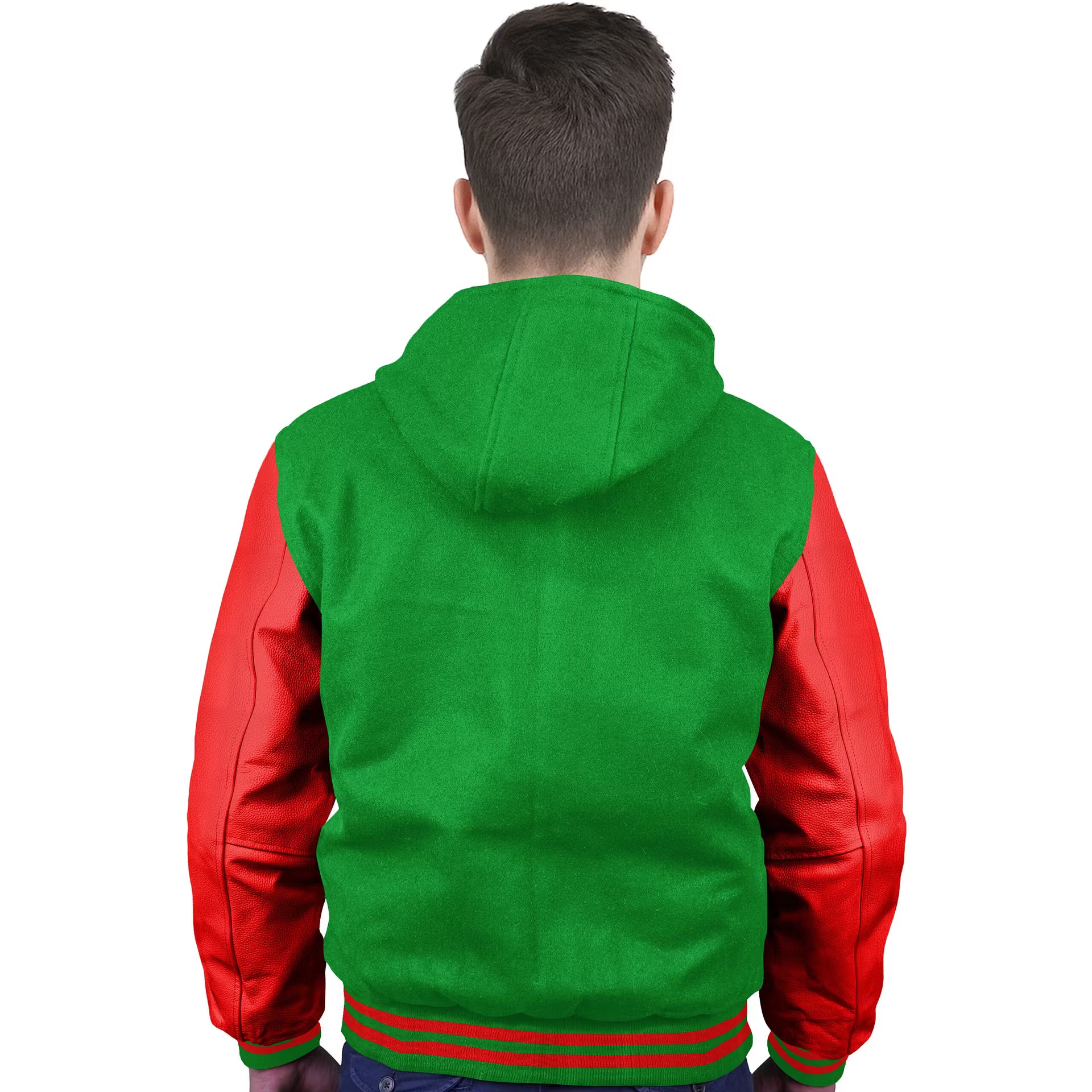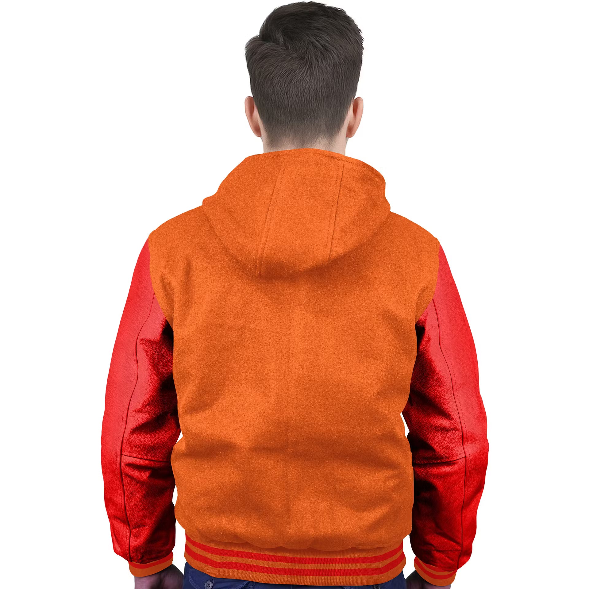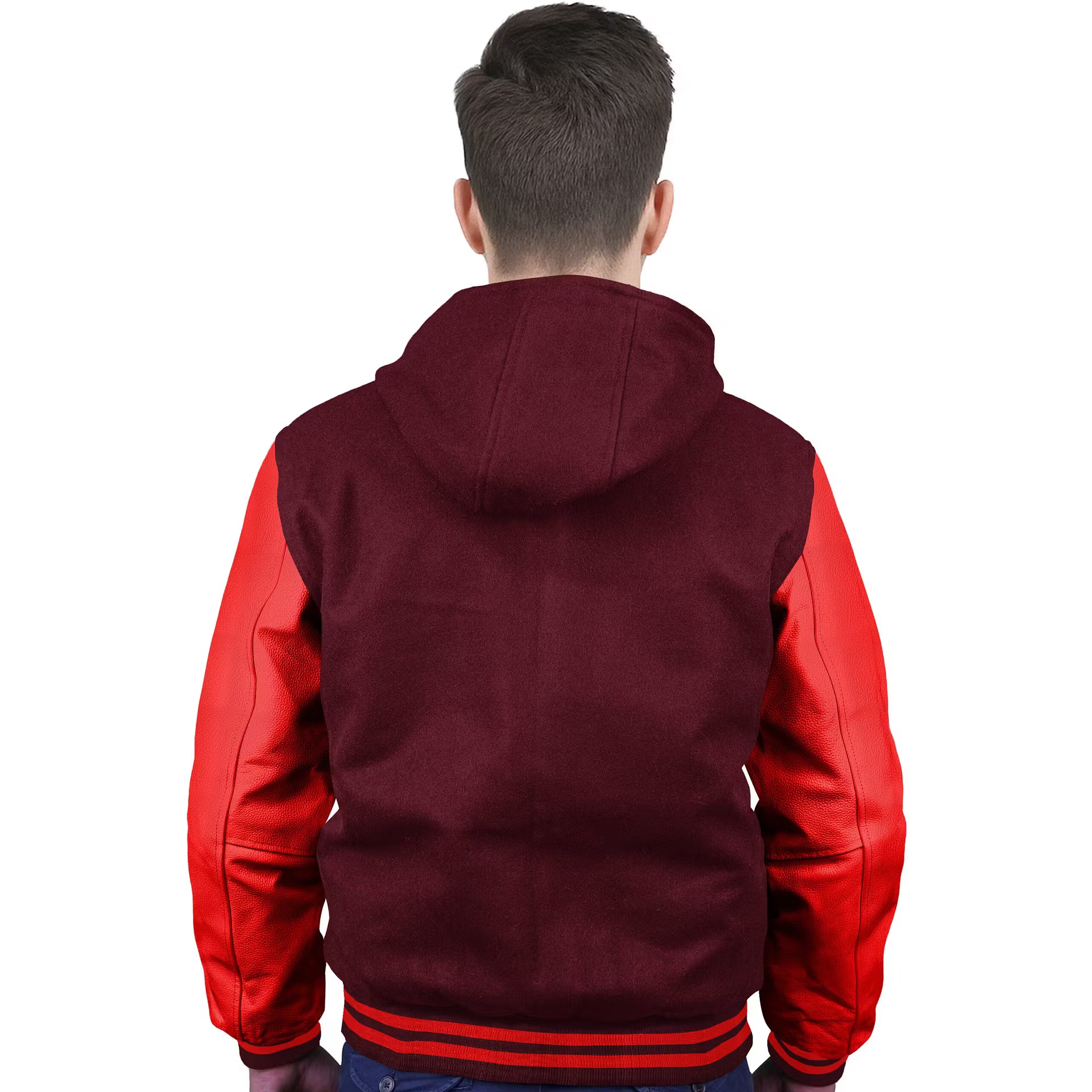 Red-Leather Sleeves & Wool Body (Hoodie)